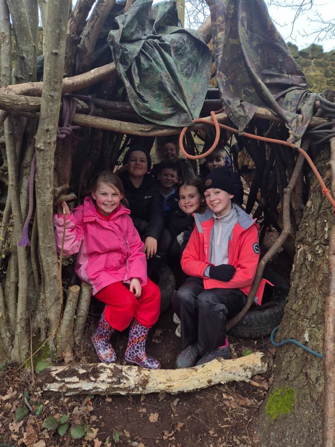 The children took part in orienteering, using maps and problem-solving skills to navigate around the site, as well as puzzle-solving challenges that tested their teamwork and thinking. They also enjoyed den-building, working together to create shelters from natural materials.