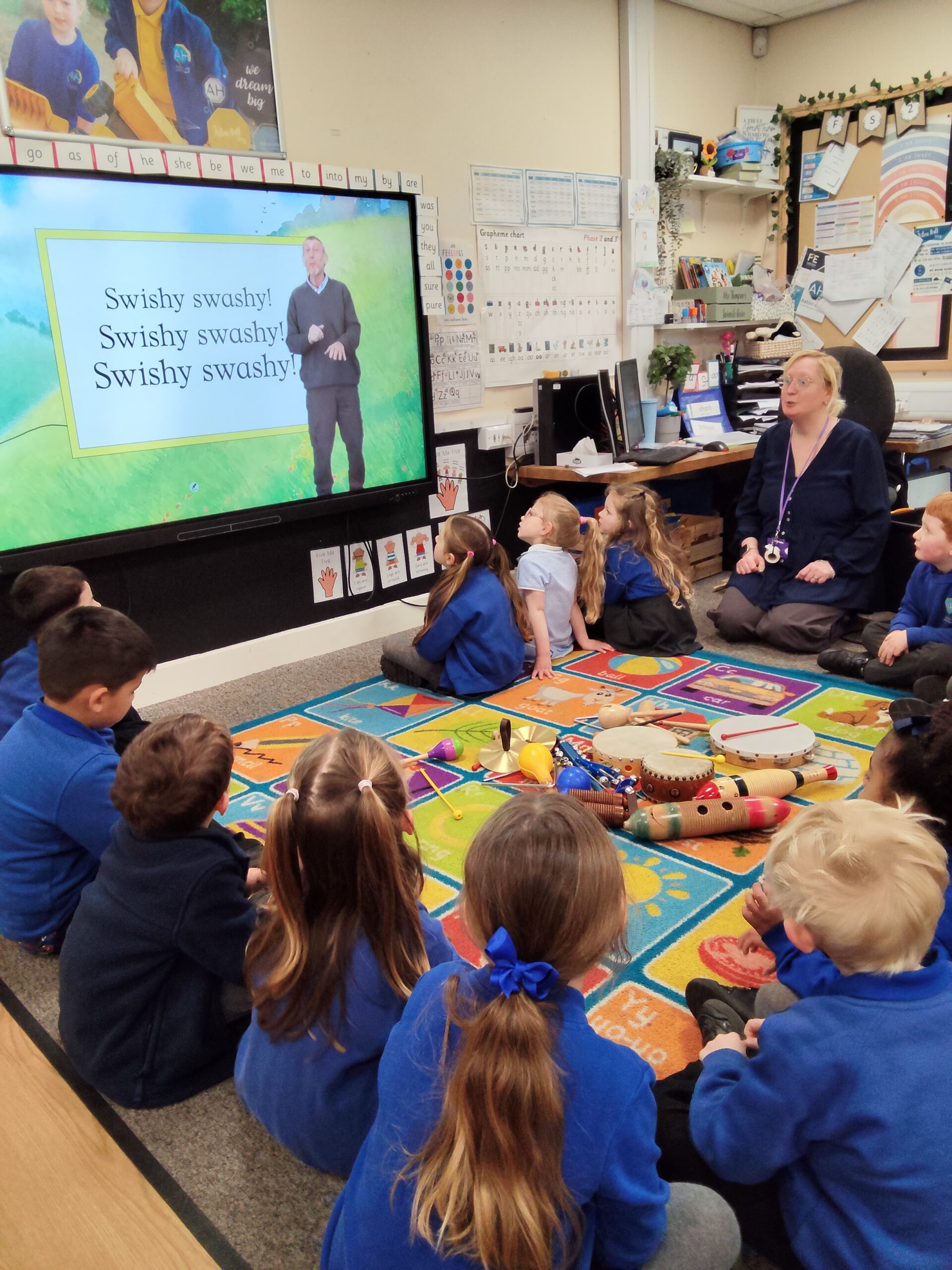 Today in EYFS, the children had lots of fun bringing their ‘We’re Going on a Bear Hunt’ story to life through music. They explored a range of instruments to represent different parts of the story. They swished through the grass using shakers, splashed in the river with drums, and stomped through the mud with loud beats. The children enjoyed experimenting with sounds and thinking about how music can match the actions and feelings within a story.