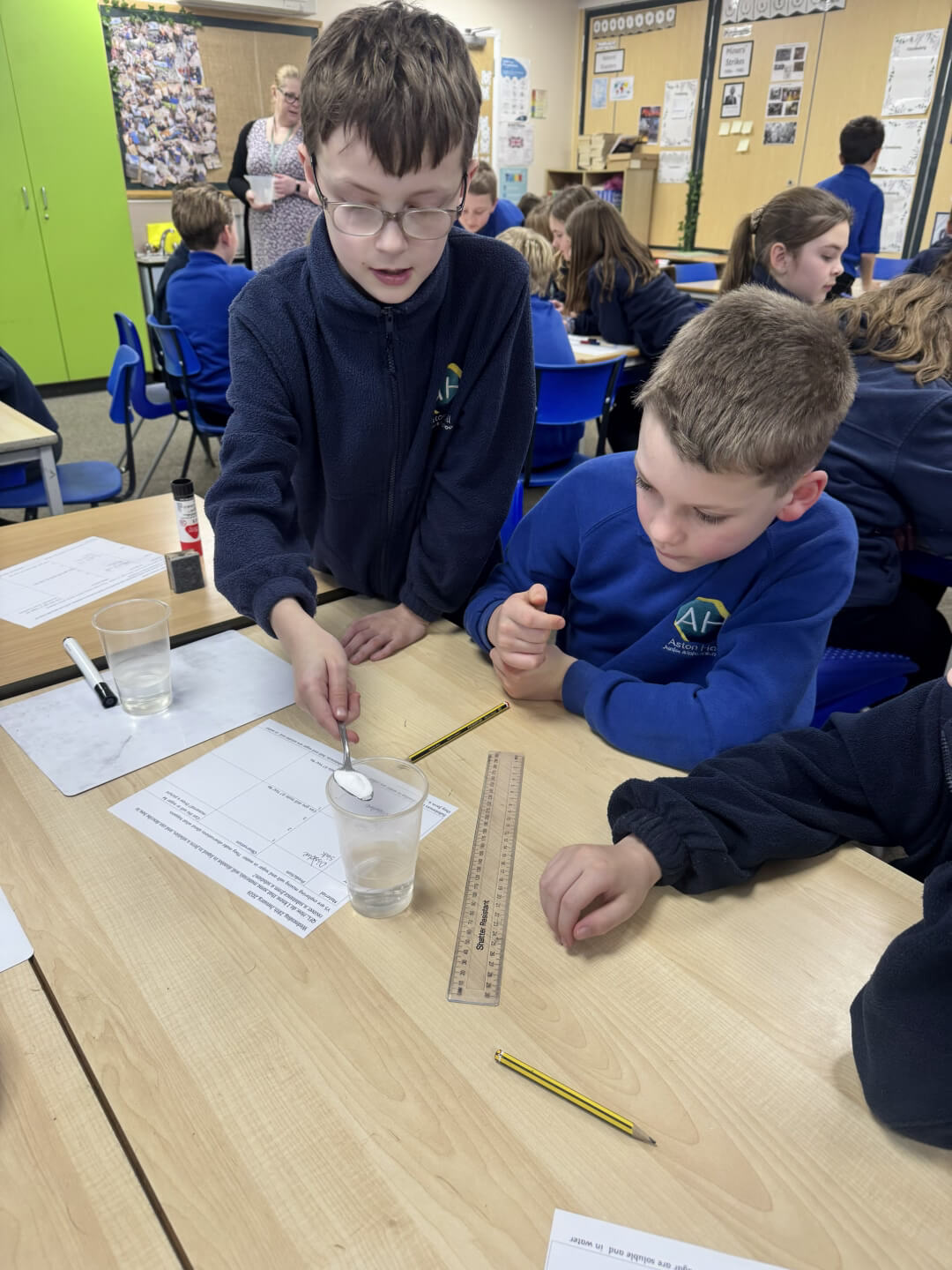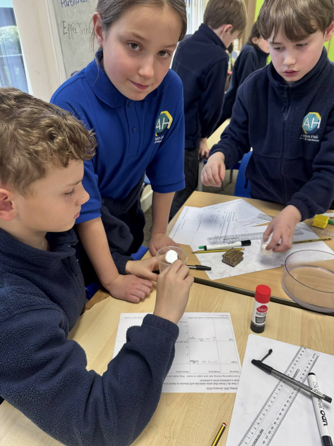 Recently in Science, Y5 explored thermal insulation by testing different materials to see which kept water hot the longest, carefully taking measurements and recording their results. They also investigated solutions by dissolving and recovering solids such as salt and sugar, while learning about irreversible changes.