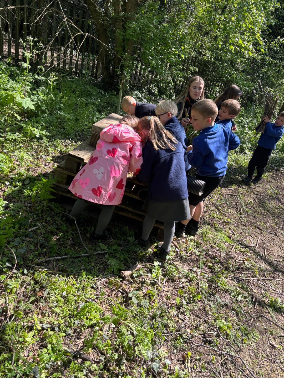 The children went on a mini-beast safari, discovering the many small creatures that live in their environment. They didn’t just observe – they also became junior architects, working together to build bug hotels to provide safe habitats for insects.